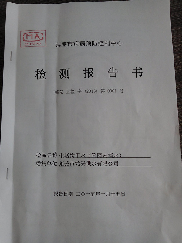 2015-1市疾控中心檢測報告