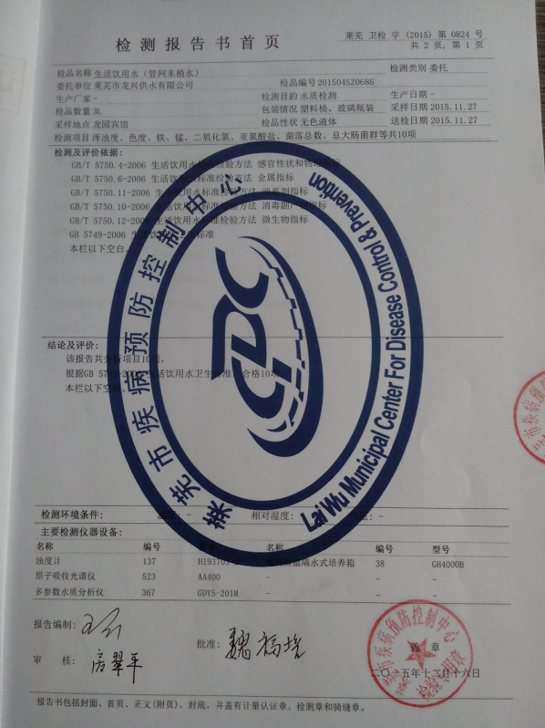 上一篇: 2015-12-23出廠水水質(zhì)日檢報告